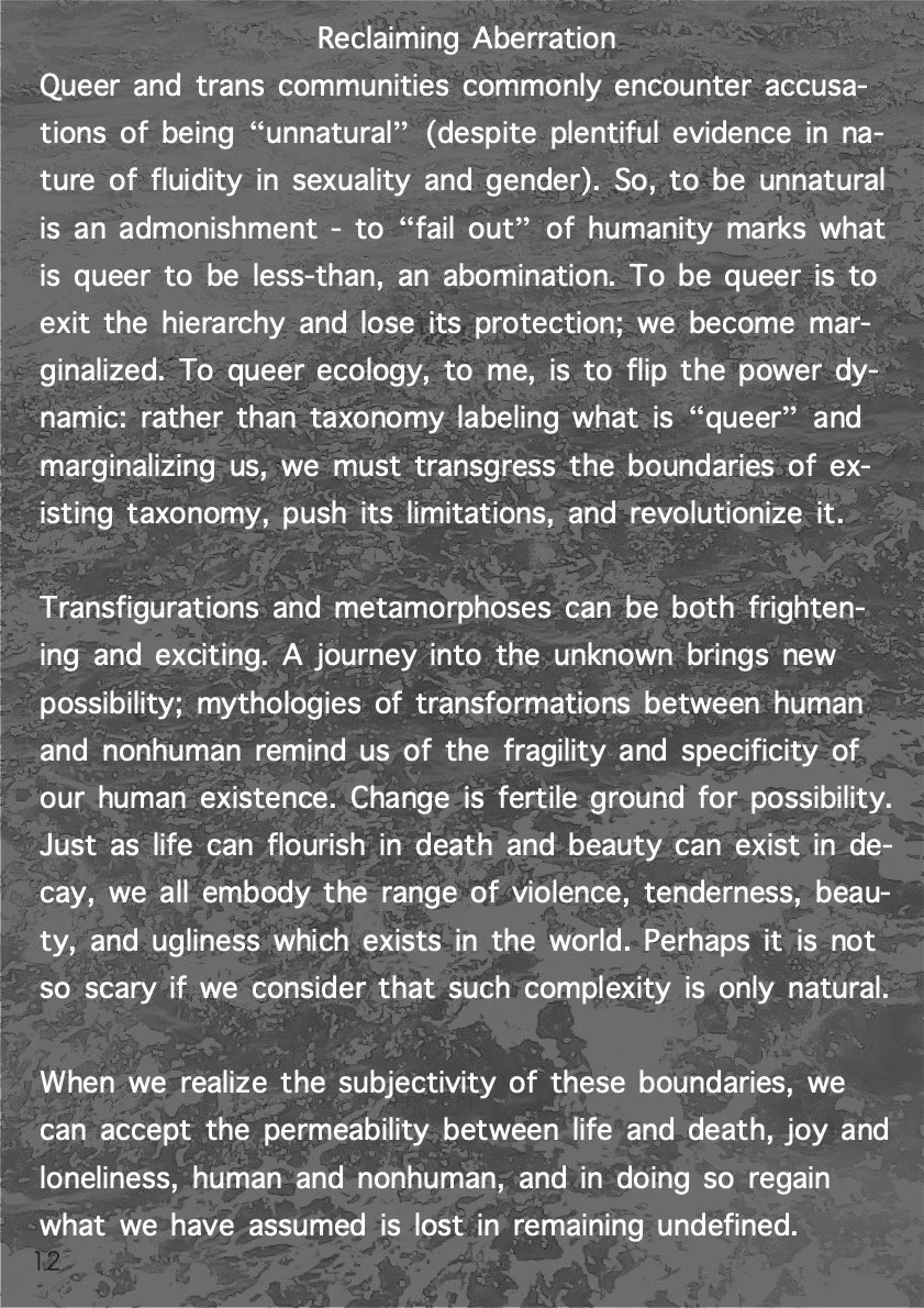 Unfixed Ecosystems, named after my MFA thesis exhibition, was a zine I wrote, designed, published, and distributed as a part of my graduate thesis project.
